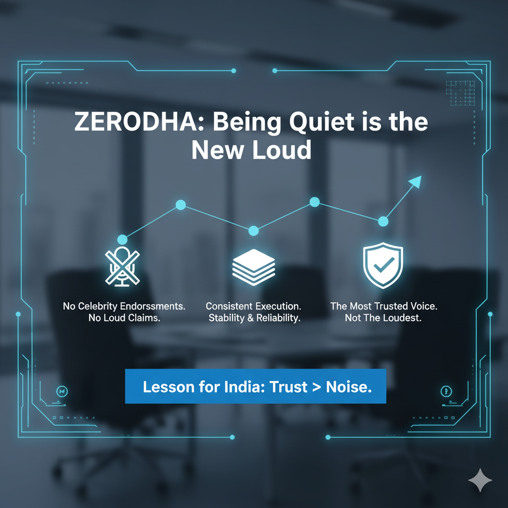- Zerodha: “We built a great product, and the profits followed.” (No ads. Just value.)